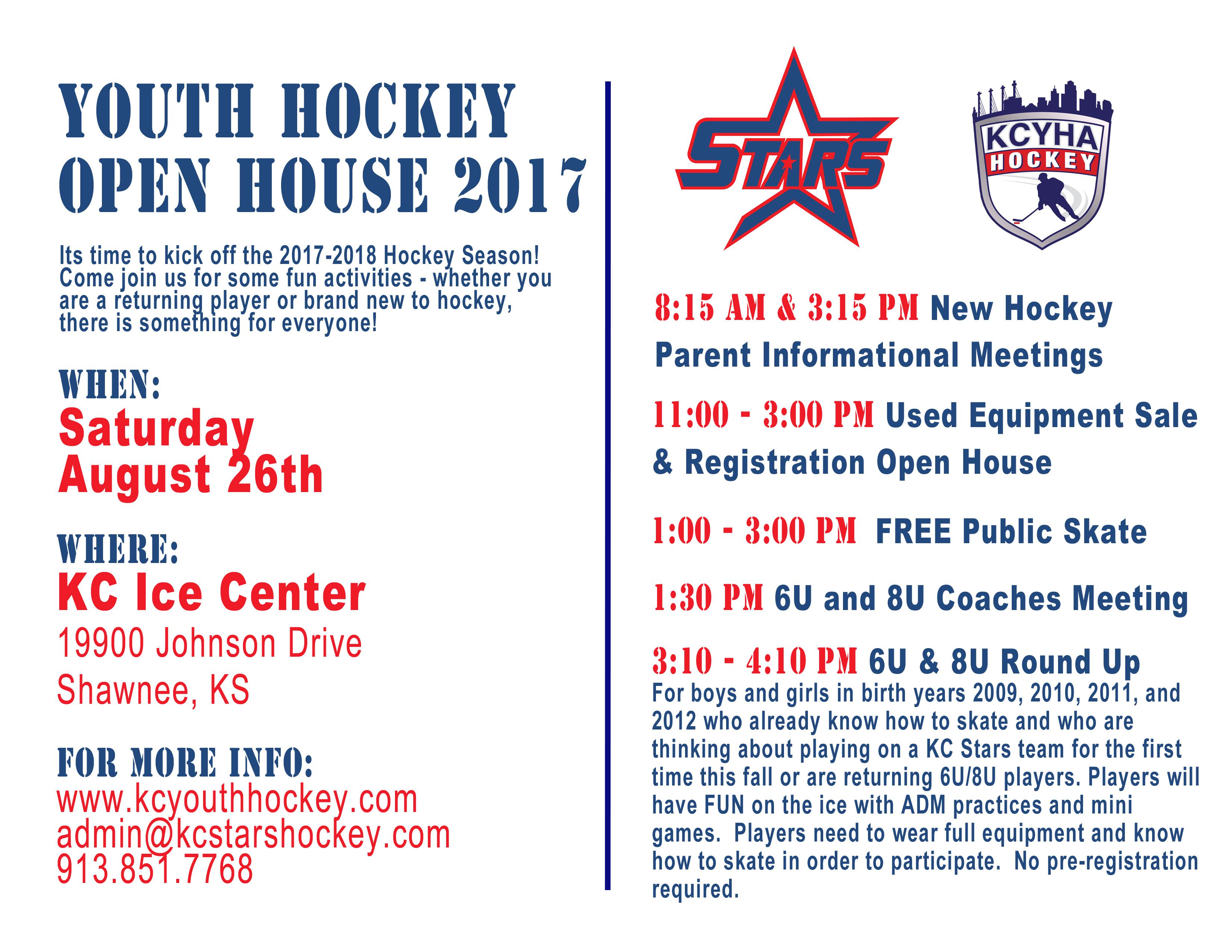 KC Stars Hockey Open House Saturday August 26, 2017 at KC Ice Center.